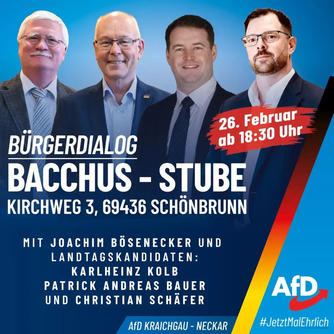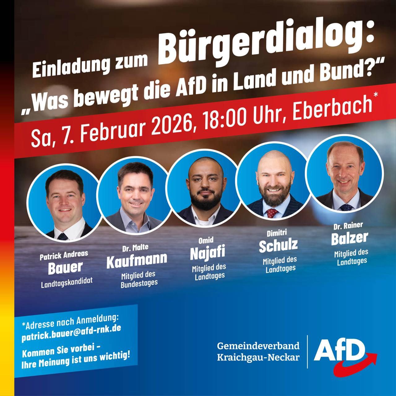Bitte meldet Euch an bei patrick.bauer@afd-rnk.de und bringt gerne auch Freunde und Interessierte mit zur Veranstaltung.