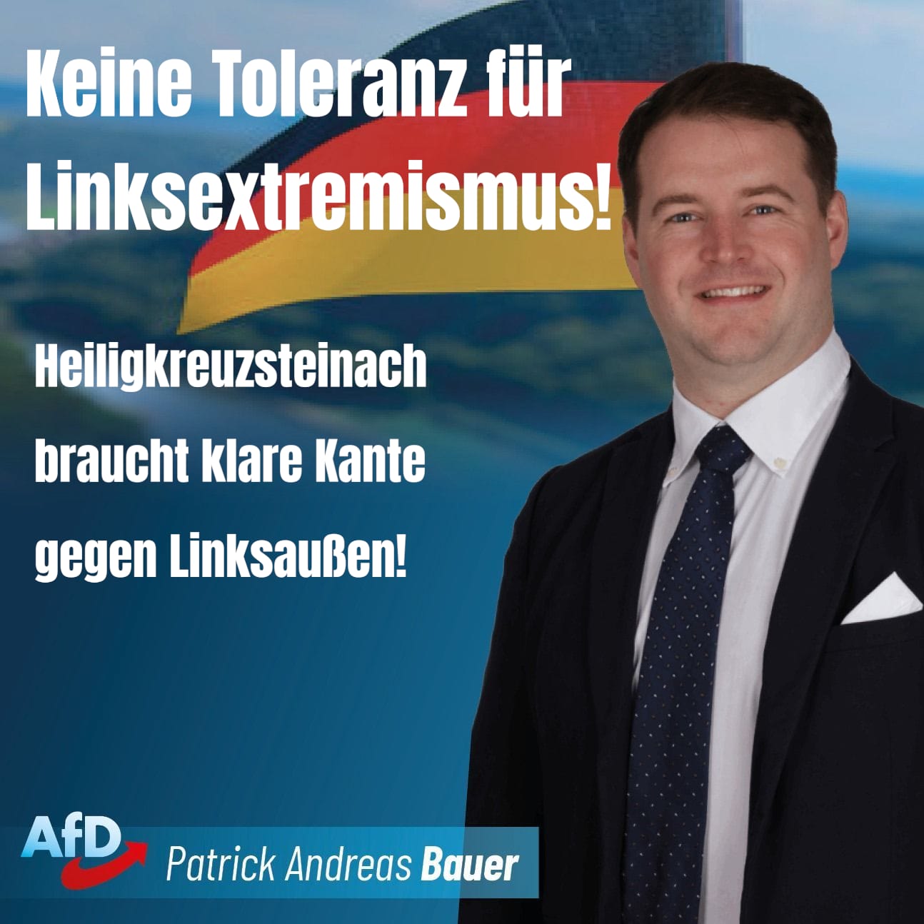 Politische Gewalt als Werbung? Nachdem in Heiligkreuzsteinach zu Gewalt aufrufende Sticker der Linksjugend Solid aufgetaucht sind, tobt in der Gemeinde eine Debatte darüber, was politische Werbung darf und wie mit ihr umzugehen ist. Der AfD-Landtagskandidat für den Wahlkreis 41 - Sinsheim, Patrick Andreas Bauer über scharfe Kritik an der Linkspartei und fordert von Bürgermeisterin Sieglinde Pfahl ein entschiedenes Durchgreifen gegen Links: